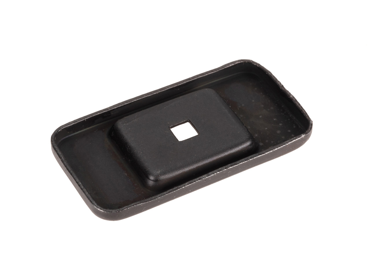 This is a high-quality pressed steel reproduction of the early brake push bar cable cover (German: Deckel (für Bremsseillagerkopf)), finished in black zinc plating just like the original wartime version.