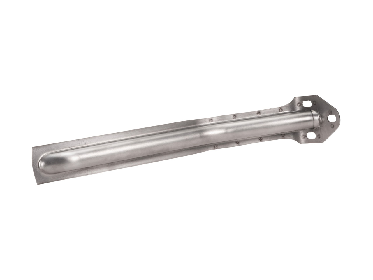 High-quality stamped-steel reproduction welded directly to the fender; serves as a fender reinforcement and a protected channel for the front headlamp cable. Universal left/right version. Before installation, drill the hole at the marked location to route the headlamp wiring correctly. Correct for all Volkswagen Kübelwagen 1940–1945 and postwar British-built Type 21.